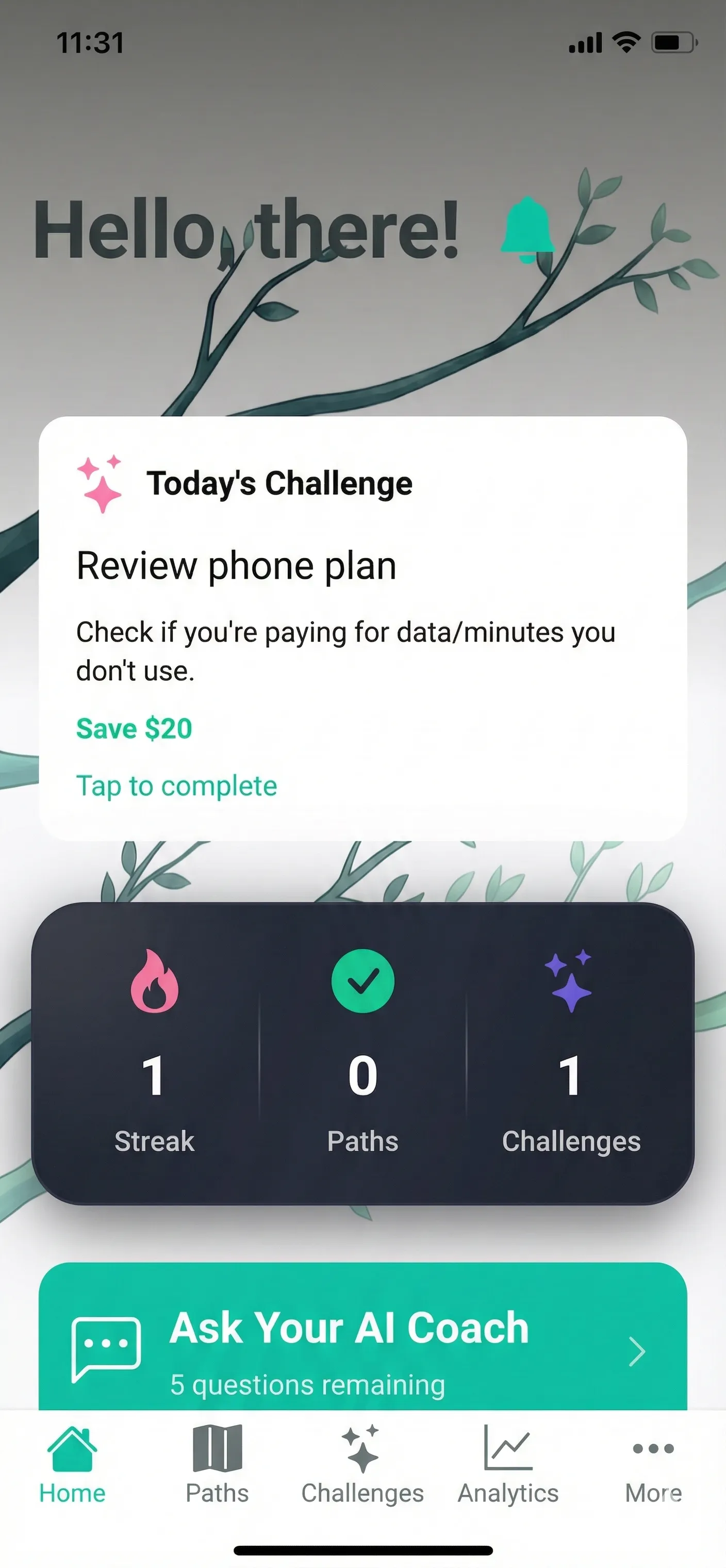 Build healthier financial habits with smart goals, daily challenges, and intuitive tracking.